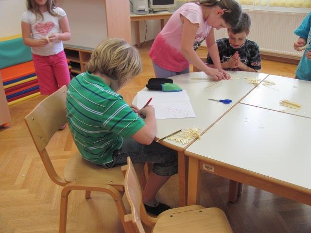 V zahvalo dobrega sodelovanja šole z Društvom podeželja Lipoglav, so nam finančno omogočili delavnico - pletenje s slamo. V torek, 8. junija, smo imeli naravoslovni dan in izvedli smo delavnico. Spoznavali smo različna žita, slamnate bilke, pripravo le teh za pletenje, si ogledali različne pletene izdelke, izdelali svoje izdelke, jih razstavili in zapeli še nekaj pesmi o žitu. Oglejte si foto-galerijo in se prepričajte v prijetnost našega počutja tega dne.