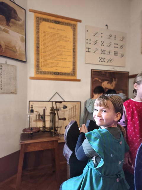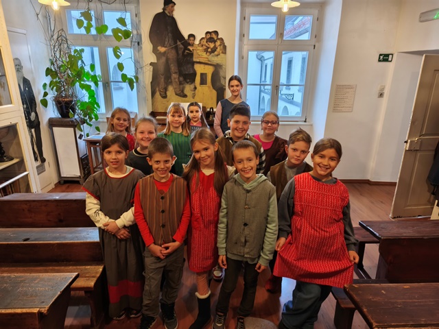 V sredo, 12. novembra 2025, smo obiskali Slovenski šolski muzej v Ljubljani. Ogledali smo si stalno razstavo o razvoju šolstva na Slovenskem in spoznali, kako so se včasih učili naši predniki.